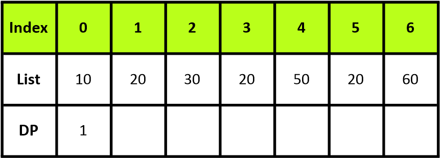 인덱스가 0일때 DP[0] = 자기 자신의 길이 즉 1이 되게 된다.