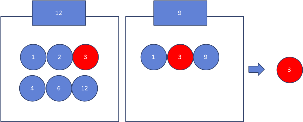 2) 두수가 나누어떨어지지 않을때에는 큰 수에서 작은 수를 나눈후 이때의 작은 수를 제수 나머지를 피제수로 하여 계속 반복한다. (제수는 나누는 수, 피제수는 나누어지는 수를 뜻한다)