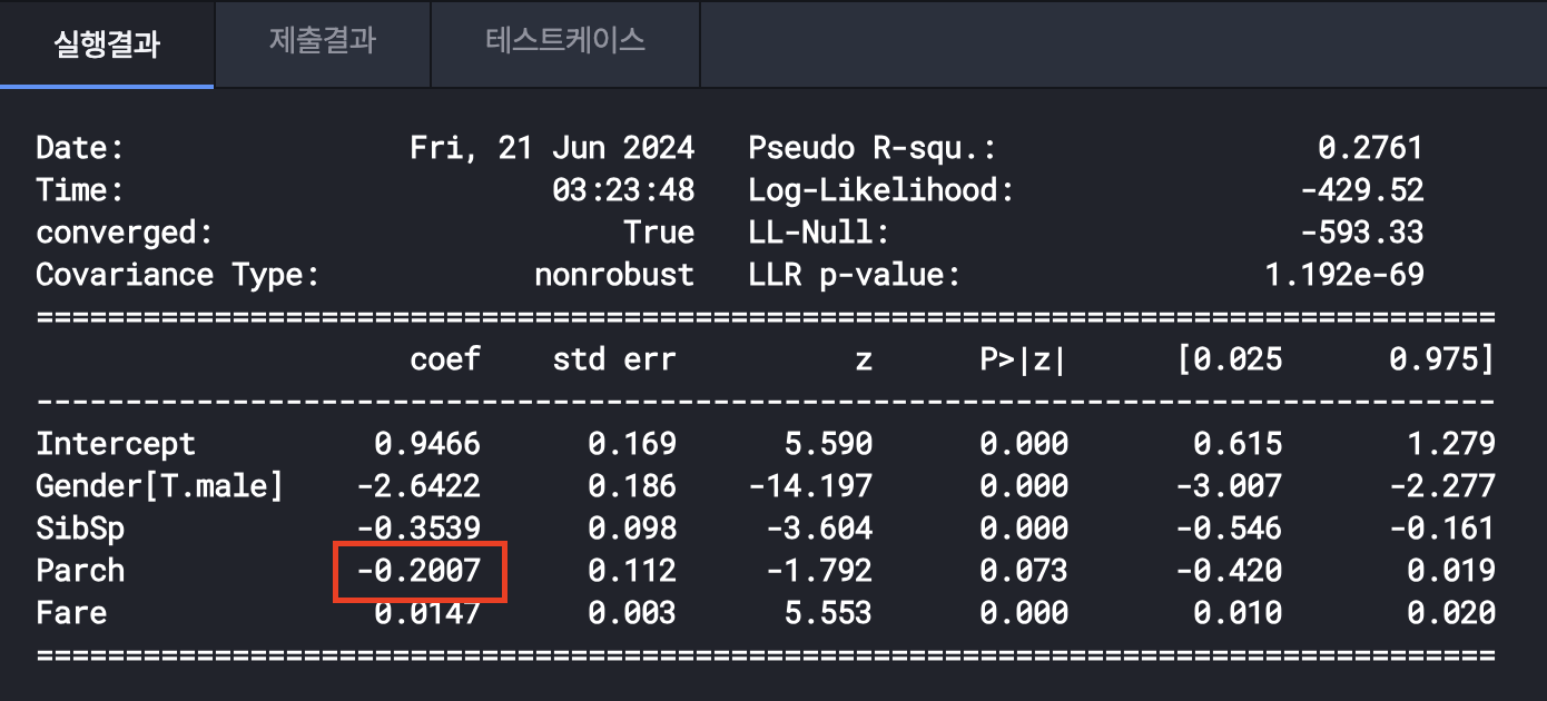 # logit('종속변수~독립변수1+독립변수2+독립변수n', data=df).fit().summary() 암기