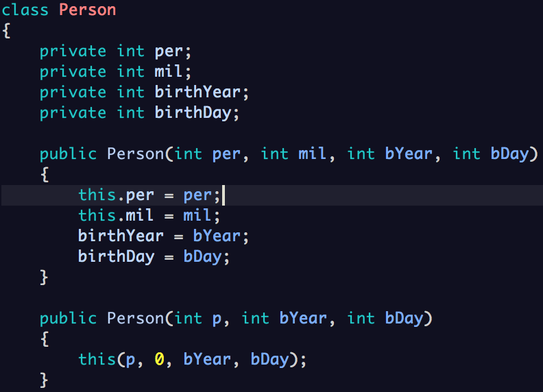만약 위의 두번째 생성자에 this키워드가 없었다면