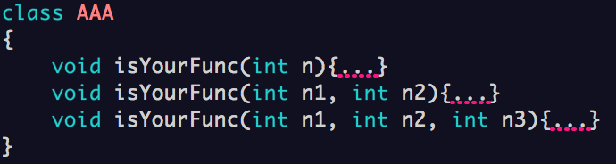 오버로딩은 다음과 같이 반복어지는 매개변수를 정의 합니다.