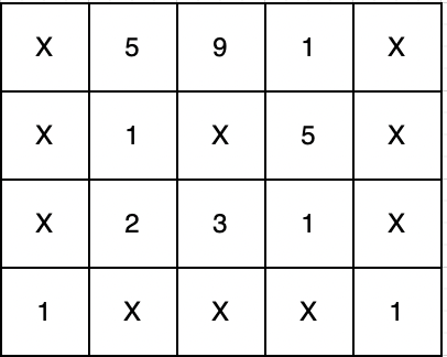 | ["X591X","X1X5X","X231X", "1XXX1"] | [1, 1, 27] |